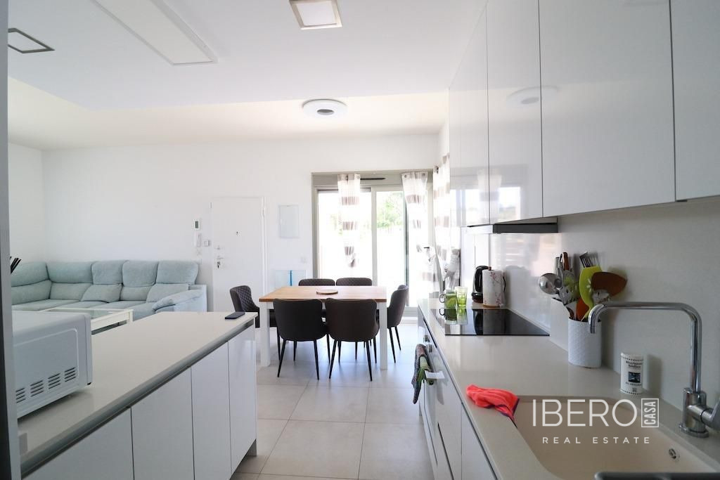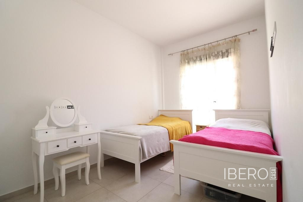 Residencial Vista Bella, San Miguel de Salinas, chalet en esquina con vistas al mar y a las salinas frente a parque y orientacion Sur con una parcela de 405 m2 y una vivienda en una planta de 100 m2 con 3 dormitorios, 2 baños, cocina con su isla abierta al salón, galería y un garaje con acceso directo a la vivienda de 153 m2, la vivienda dispone de un solarium de 60 m2, Piscina privada y se vende amueblada y con aire acondicionado.