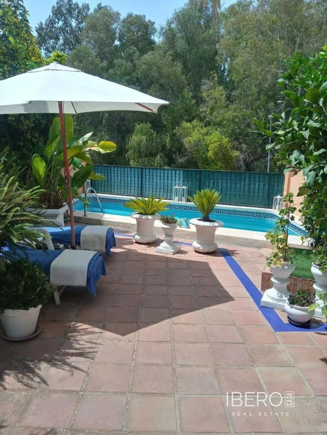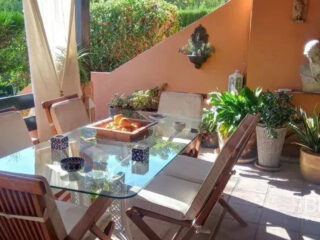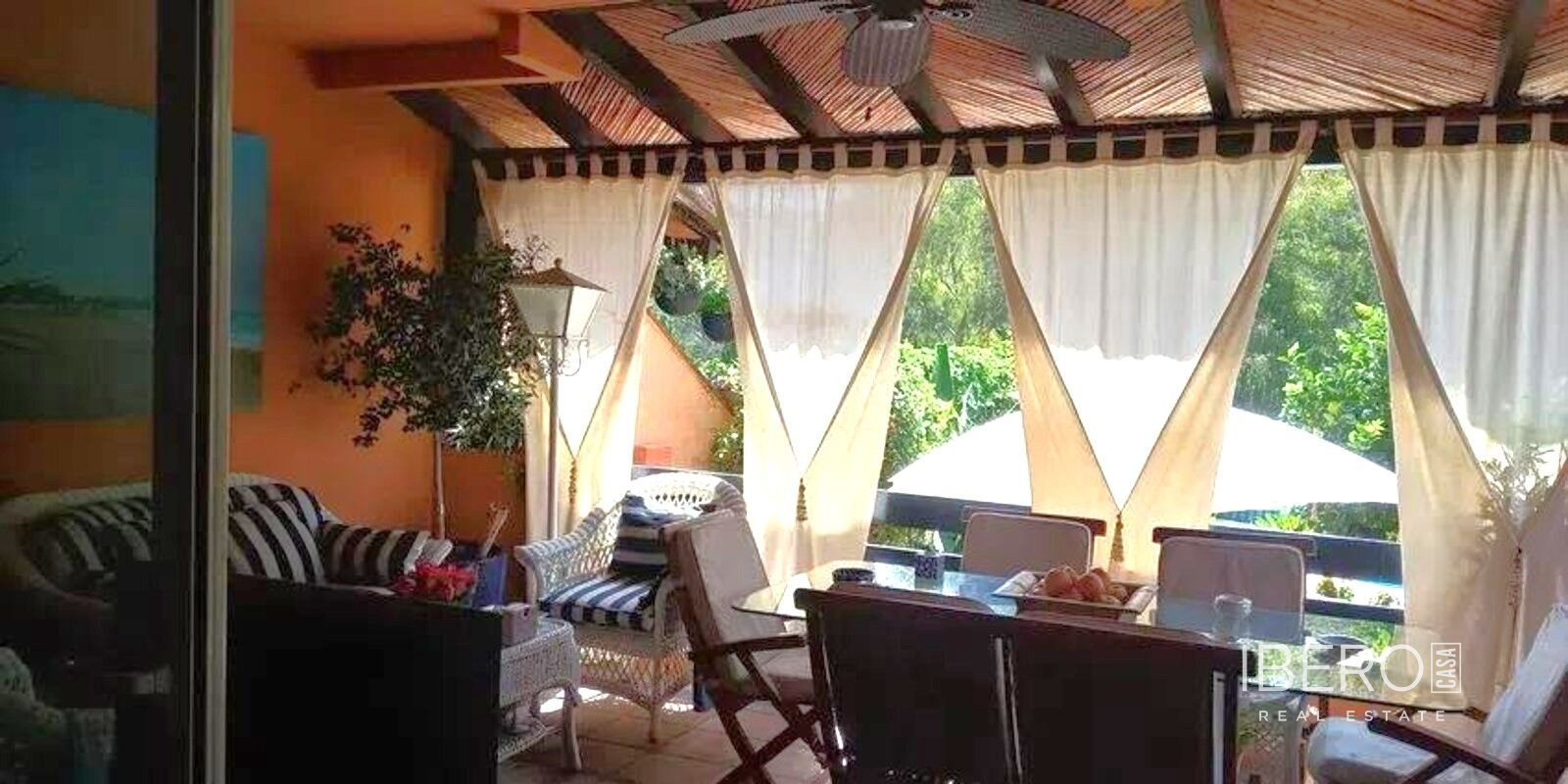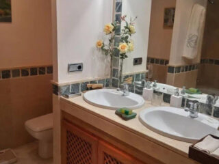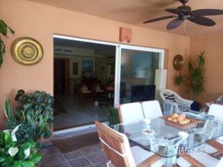 Espaciosa adosada en la Milla de Oro junto al Hotel Puente Romano y el Hotel Alanda Marbella. La vivienda está distribuida en cuatro niveles: La planta principal consta de vestíbulo de entrada, aseo de invitados, cocina totalmente equipada con office, un espléndido salón con chimenea y un amplio cierre de doble acristalamiento que da paso a un porche comedor de verano con acceso al jardín y a la piscina de uso privado. Una cómoda escalera le lleva a la primera planta donde encontrará el amplio dormitorio principal con zona de vestidor, baño en suite con jacuzzi y plato de ducha y amplia terraza privada y un segundo dormitorio de invitados con baño en suite, amplio armario empotrado y terraza privada con vistas al mar. En la planta superior un precioso dormitorio abuhardillado, igualmente con baño en suite, armario empotrado y acceso a un gran solarium con sol de tarde y con vistas a las montañas que rodean Marbella como la Concha. El semisótano es totalmente diáfano y tiene adjunto un trastero y acceso al garaje subterráneo con dos amplias plazas de aparcamiento. Igualmente y a través de una amplia cristalera tiene salida a un porche chill-out con escalera que da acceso al jardín y piscina. Por último el amplio jardín tiene algunos árboles frutales y plantas tropicales que le dan un carácter muy peculiar y la posibilidad de disfrutar del sol y su magnífica piscina privada. Características: 450 m2 útiles Orientación Este/Oeste 3 habitaciones con baño en suite y 1 aseo de invitados. Sistema de aire acondicionado por conducto frio-calor (DAIKIN) con encendido/apagado independiente en dormitorios y salón. 2 terrazas y 1 solárium. Amplio porche cubierto. 4 plazas de garaje, 2 subterráneas y 2 exteriores. Chimenea. Persianas eléctricas. Segunda mano/perfecto estado. Seguridad.