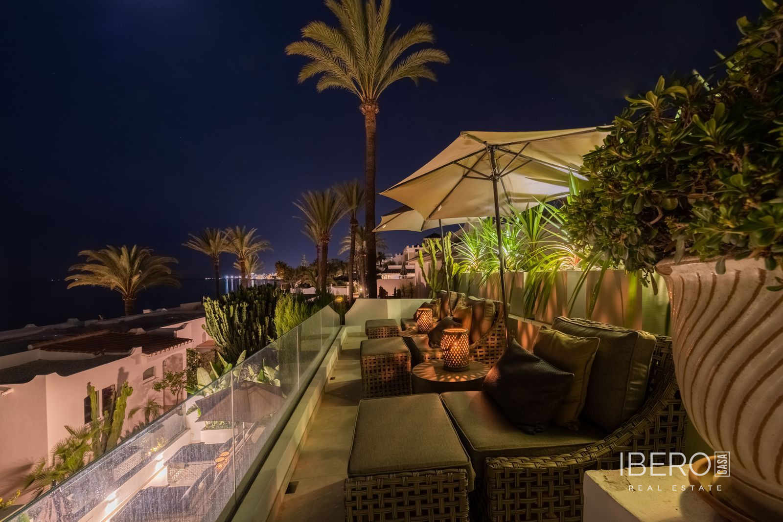 Adosada, The Golden Mile, Costa del Sol. 3 Dormitorios, 2 Baños, Construidos 109 m², Terraza 80 m², Jardin/Terreno 189 m². Posición : Primera línea de Playa, Lado de la Playa, Cerca de Tiendas, Cerca del Mar, Cerca de Ciudad, Urbanización, Complejo 1ª Línea de Playa. Orientación : Sur. Estado : Excelente, Reformado Recientemente, Renovado Recientemente. Piscina : Comunitaria. Climatización : Aire Acondicionado, A/A Caliente, A/A Frio. Vistas : Mar. Caracteristicas : Armarios Empotrados, Cerca de Transporte, Terraza Privada, Baño En-Suite, Suelos de Mármol, Barbacoa. Muebles : Amueblada, Opcionales. Cocina : Equipada. Jardin : Comunitario. Seguridad : Recinto Cerrado. Aparcamiento : Comunitario. Categoría : Frente a la playa, Lujo, Reventa, Contemporáneo.