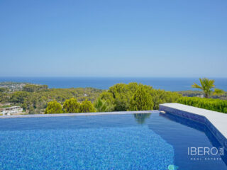 Descubra el máximo lujo en esta impresionante villa, situada en la prestigiosa urbanización La Fustera en Benissa. Disfrute todos los días de impresionantes vistas panorámicas del mar azul, que se extiende desde el Cap d'Or en Moraira hasta más allá del emblemático Peñón de Ifach en Calpe. Esta exclusiva villa se distribuye en dos plantas y ofrece nada menos que 4 espaciosos dormitorios dobles y 4 elegantes cuartos de baño. La planta baja le da la bienvenida con un generoso salón, una preciosa sala de estar y una elegante zona de comedor. La moderna cocina, equipada con una isla y una cómoda despensa, se encuentra junto a estas zonas de estar. Aquí también encontrará dos lujosos dormitorios y dos amplios cuartos de baño. La planta superior alberga otros dos generosos dormitorios, ambos con baño en suite. Una de estas habitaciones tiene incluso su propio vestidor. Ambos dormitorios ofrecen acceso a una terraza privada, ideal para mañanas tranquilas o mágicas noches de verano. Salga y déjese sorprender por la hermosa piscina infinita, donde podrá relajarse y disfrutar de las espectaculares vistas. Además, la villa cuenta con un jacuzzi, una cocina exterior, una terraza cubierta, un cómodo salón, una barbacoa y un espacioso garaje. La ubicación es perfecta: a tan sólo 5 minutos de las preciosas playas de Benissa y a 10 minutos del bullicioso centro de Calpe. No espere más y aproveche esta oportunidad única de convertirse en propietario de esta fantástica villa. Visite hoy mismo la futura casa de sus sueños y experimente el lujo y el confort que esta propiedad le ofrece. Vídeo a petición.