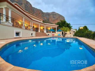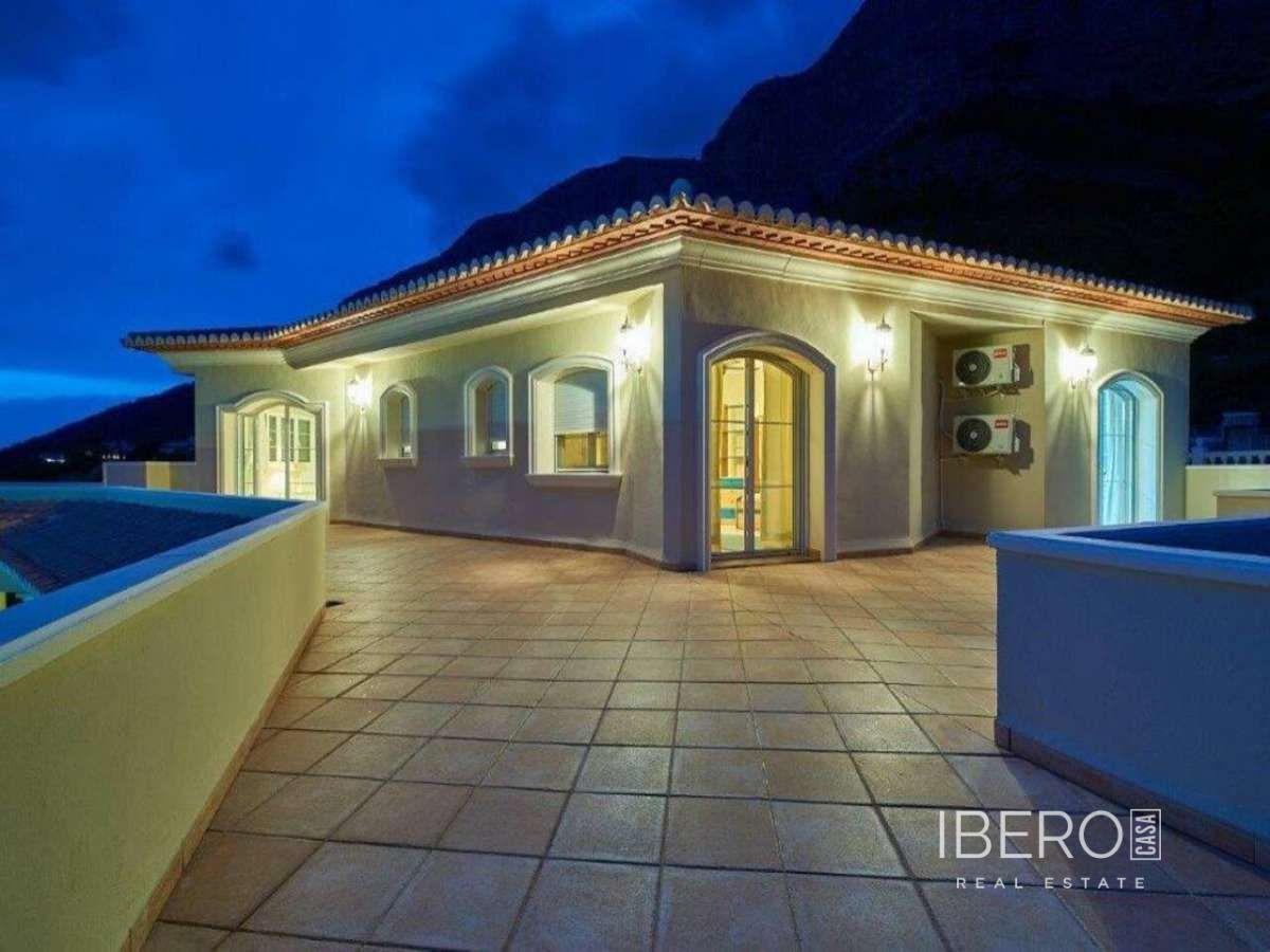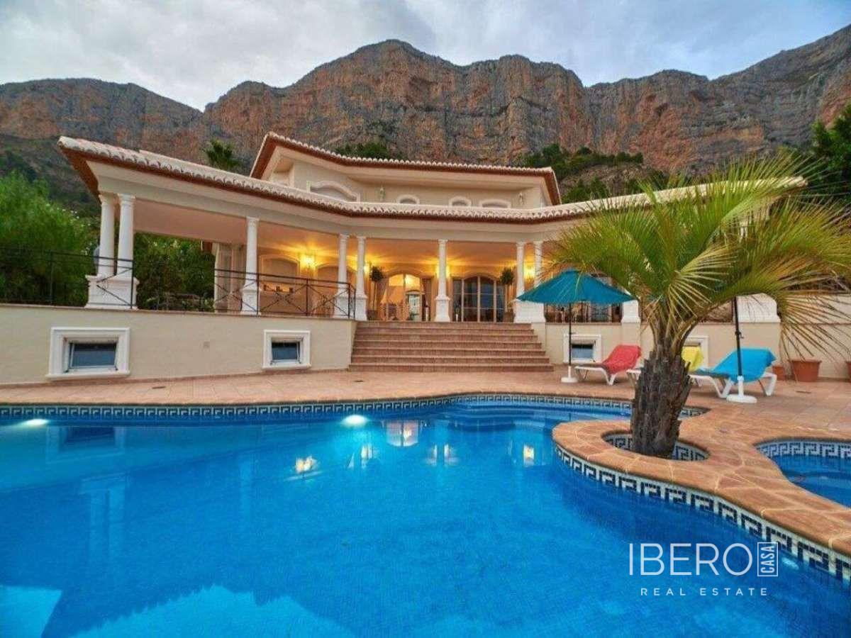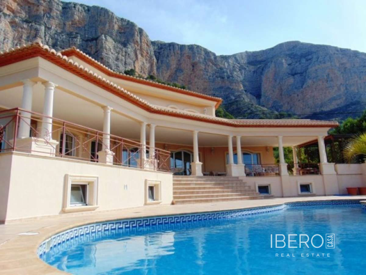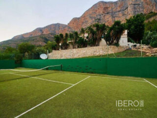 Impressive designed property on the upper slopes of the Montgo with fantastic South facing views.Located 15 minutes from the Old Town of Javea, 10 minutes from La Sella Golf and 15 minutes from the town of Denia.Automatic gates down a gently sloping driveway with plenty of parking, double garage and space for boats or caravans.Porch leading through to an impressive hallway with fabulous wrought iron staircase, leading to upper bedrooms.On the main level at the entrance is a large office/Study/Library, Guest WC, 42m2 Lounge with Feature fireplace and doors leading out onto a wide Naya area overlooking the Swimming Pool, ideal for watching the sunsets.Adjacent is a second lounge ideal TV room or games room. Large Dining room suitable for seating 12 people again with doors leading out onto the terrace.Stylish Kitchen with dining area, featuring central reservation with halogen hob, double oven and Microwave, and separate utility with drying area.Spacious guest bedroom with dressing area and en-suite bathroom with double vanity units.On the upper level are three equally spacious bedrooms all with en-suite bathrooms and with access to a large terrace to enjoy the morning sunrise. The main bedroom has air conditioning and a jacuzzi bath.The 12x6 freeform pool with jacuzzi, pretty terraces and established trees the area and below is a tennis court.On the lower level of the villa accessed internally is a variety of rooms ideal as a gymnasium, apartment, kitchen with plumbing ready. All prepared and ready to go.