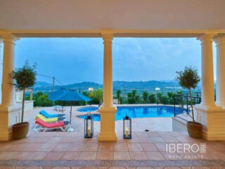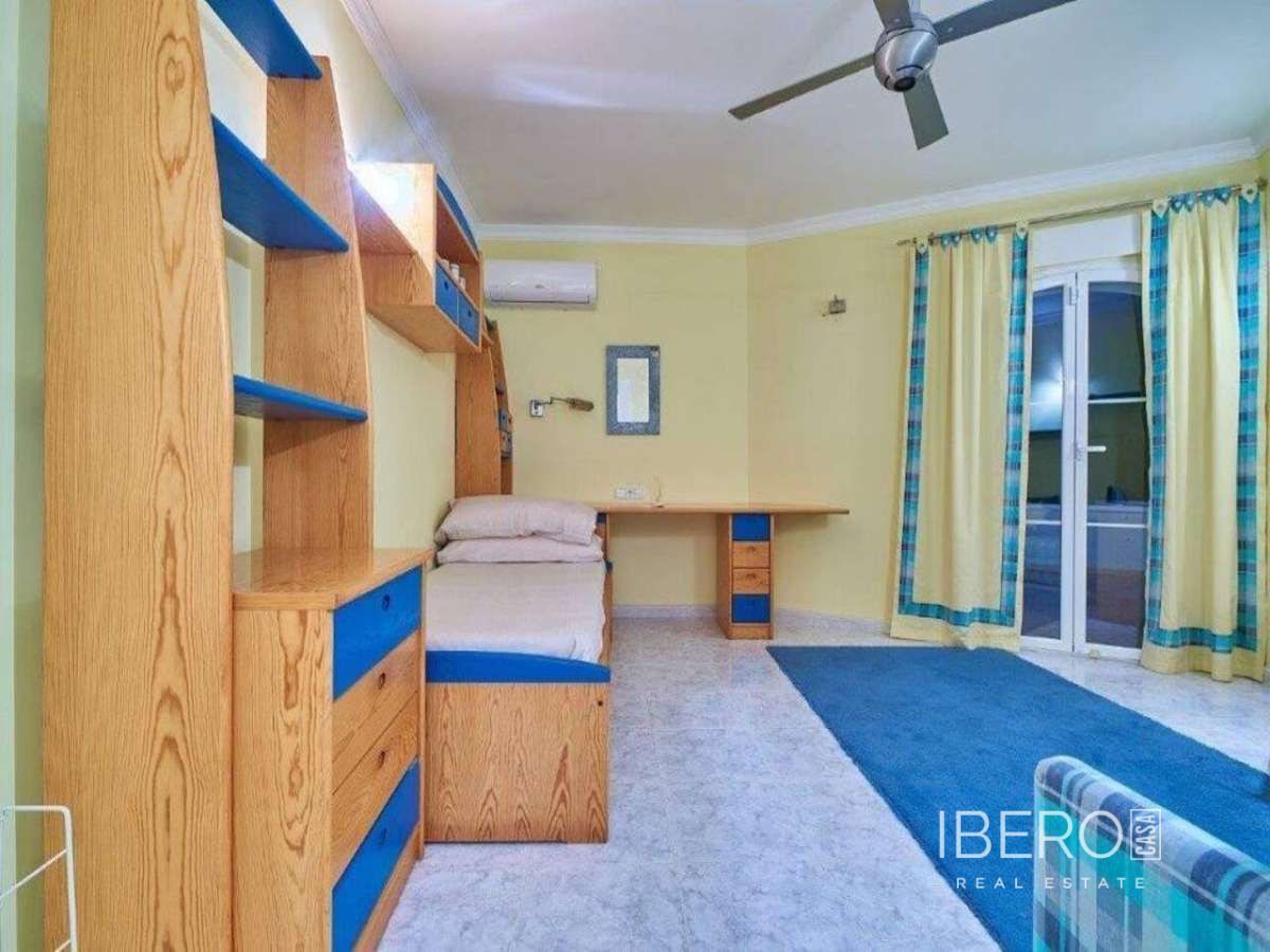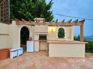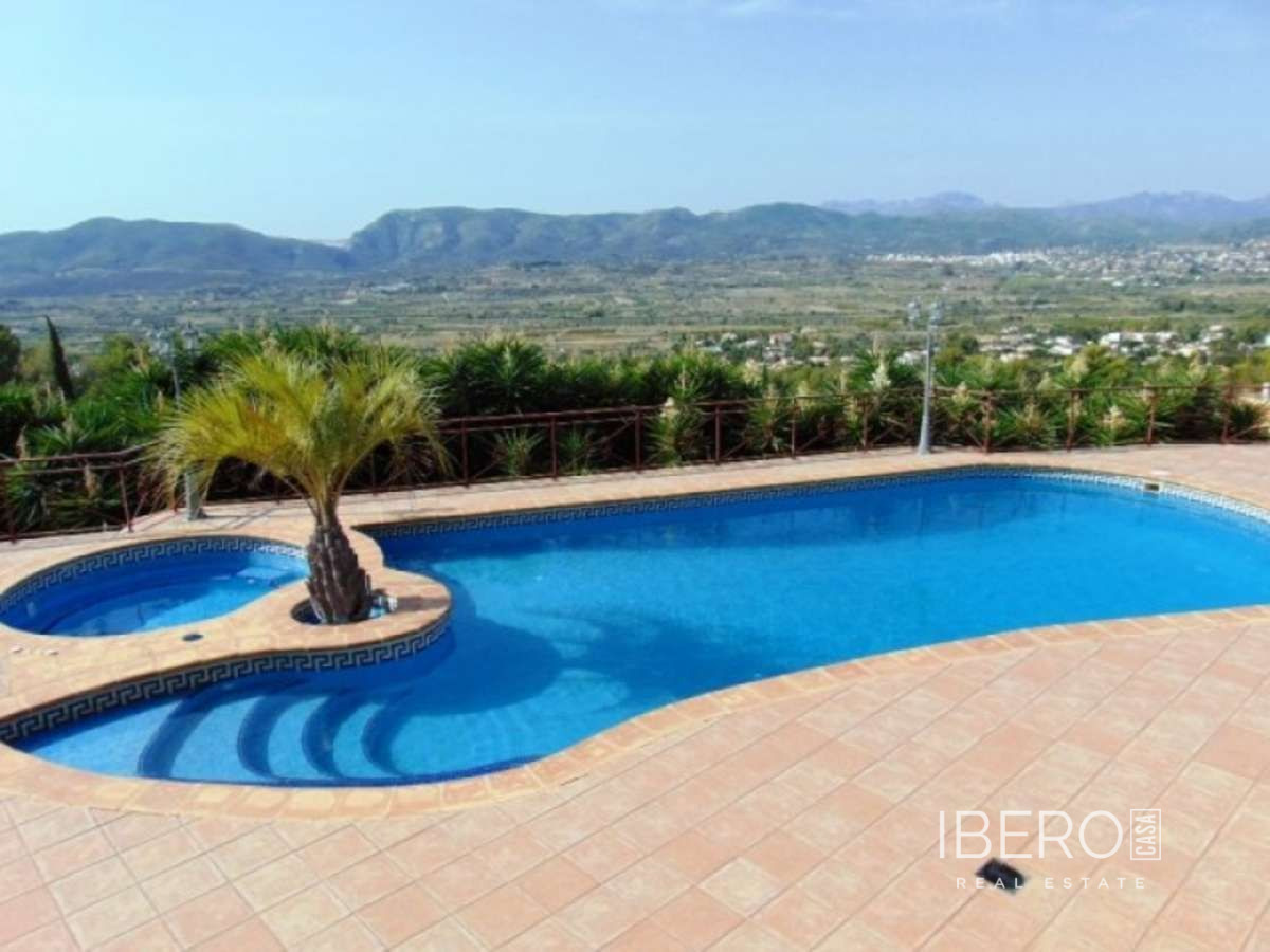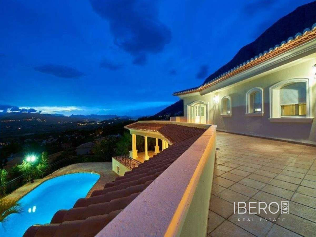Impressive designed property on the upper slopes of the Montgo with fantastic South facing views.Located 15 minutes from the Old Town of Javea, 10 minutes from La Sella Golf and 15 minutes from the town of Denia.Automatic gates down a gently sloping driveway with plenty of parking, double garage and space for boats or caravans.Porch leading through to an impressive hallway with fabulous wrought iron staircase, leading to upper bedrooms.On the main level at the entrance is a large office/Study/Library, Guest WC, 42m2 Lounge with Feature fireplace and doors leading out onto a wide Naya area overlooking the Swimming Pool, ideal for watching the sunsets.Adjacent is a second lounge ideal TV room or games room. Large Dining room suitable for seating 12 people again with doors leading out onto the terrace.Stylish Kitchen with dining area, featuring central reservation with halogen hob, double oven and Microwave, and separate utility with drying area.Spacious guest bedroom with dressing area and en-suite bathroom with double vanity units.On the upper level are three equally spacious bedrooms all with en-suite bathrooms and with access to a large terrace to enjoy the morning sunrise. The main bedroom has air conditioning and a jacuzzi bath.The 12x6 freeform pool with jacuzzi, pretty terraces and established trees the area and below is a tennis court.On the lower level of the villa accessed internally is a variety of rooms ideal as a gymnasium, apartment, kitchen with plumbing ready. All prepared and ready to go.