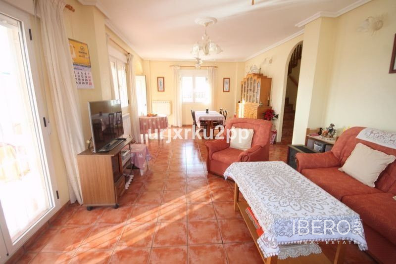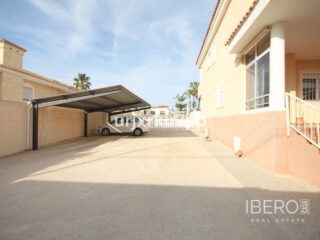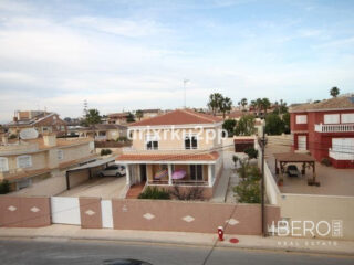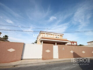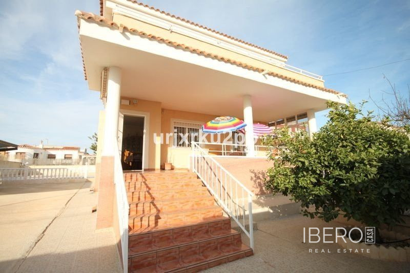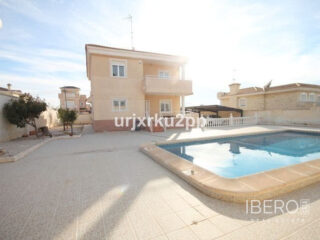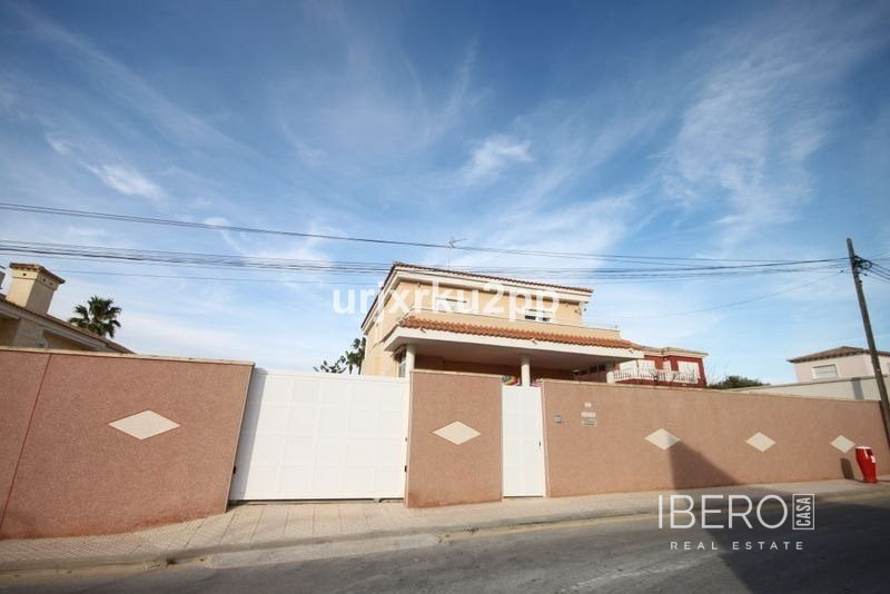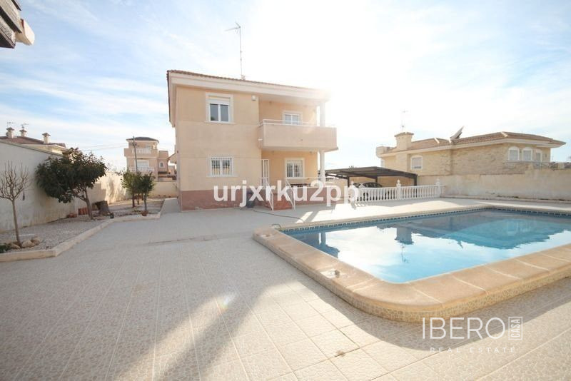 New price! This detached villa offers lots of living space as well as generous bedrooms on a big plot with private pool and covered parking. The nice clean lines of how it is presented offers lots of opportunities if you wish to develop further with ease. On the ground level is a spacious living room and an independent kitchen with a dining area. From the living areas are doors leading on to a raised terrace. Also on this level is the first bedroom *currently used as a office) and first bathroom. From the hallway are stairs leading to the upper level. On this level are 4 bedrooms with built in wardrobes. The master bedrooms has an ensuite and 2 of the other bedrooms are generous. Also at this level is a bathroom. From the master bedroom you access the upper terrace which offers lateral lake views. At the rear of the property is a vast terrace and private pool. The surrounding terrace offers garden area with fruit trees and covered parking. Located in a lovely quiet location all amenities are close by and within easy walking distance. Close by you have the Sports Complex with gym, The Friday market, the Aqua Park and the Habaneras Commercial Centre. There is also local transport to all surrounding areas and Alicante and Cartagena. Walking distance to a choice of beaches is approx 30 minutes The property comes partially furnished.