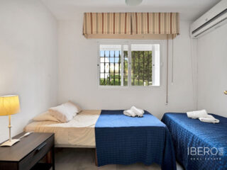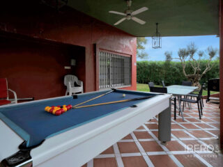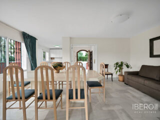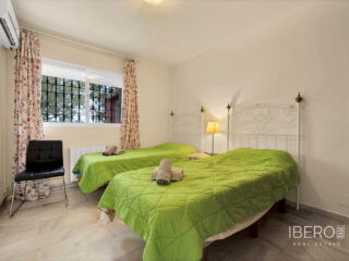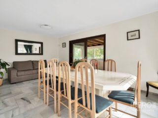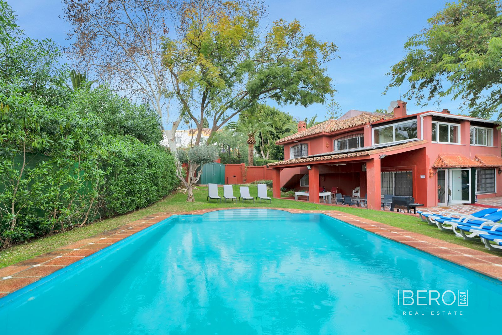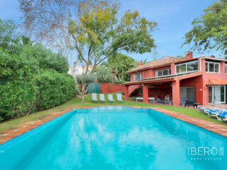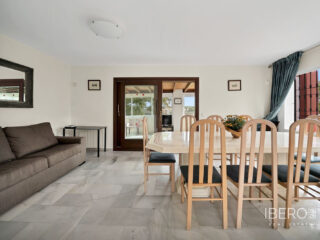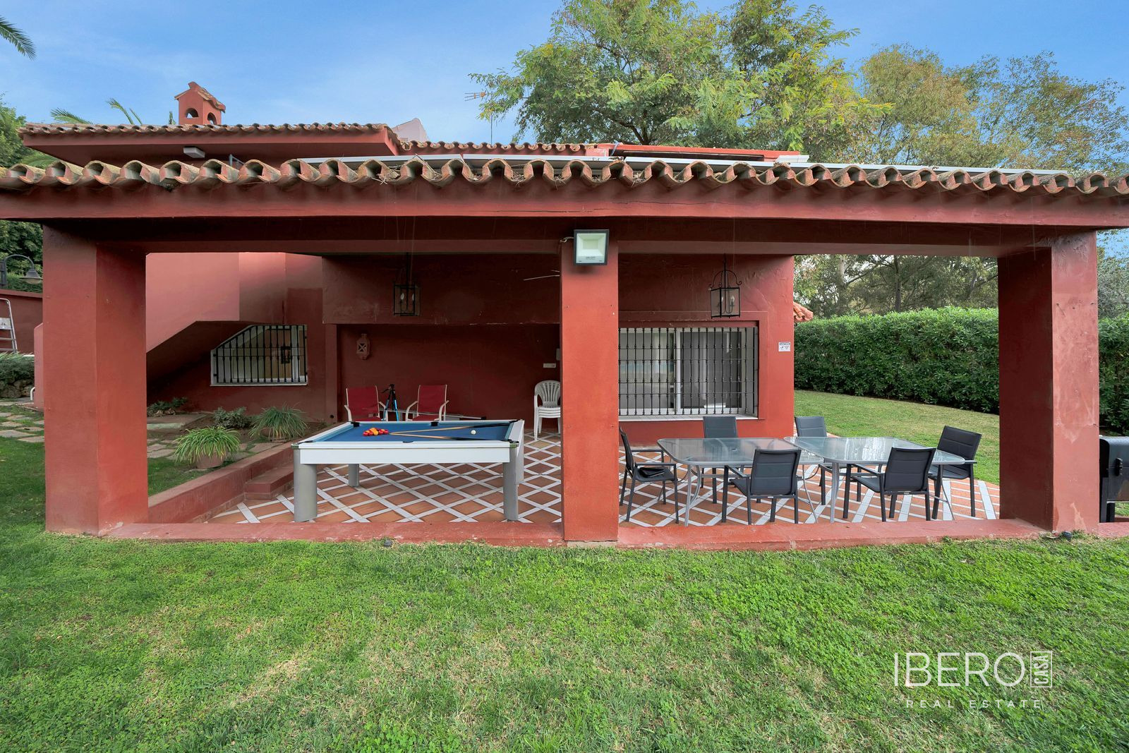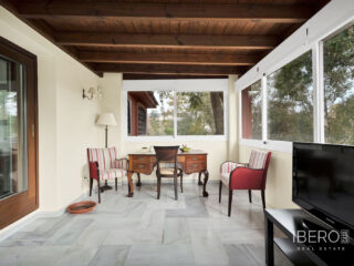 Villa independiente ubicada en una zona residencial tranquila de Cerrado de Elviria, a 800m de la playa, cerca de supermercados y restaurantes y a 8km del centro historico de Marbella. Está completamente vallada con mucha privacidad, piscina, jardin grande con arboles y frutales. La villa se distribuye en: a nivel de entrada: hall con aseo, cocina totalmente equipada, salon amplio y terraza acristalada con techo de madera, 3 dormitorios, 2 baños, planta inferior: gran salon/comedor con chimenea, dormitorio principal con baño ensuite y vestidor, dos mas dormitorios que comparten baño. Las dos plantas no están conectadas por dentro, hay que salir para bajar. Preciosa terraza cubierta, zona chillout y barbacoa. La casa cuenta con calefaccion central y aire acondicionado frío/calor. Ademas tiene placas solares montadas. Espacio para 2 coches, sistema cargador coche electrico. Hace falta alguna reformación.