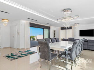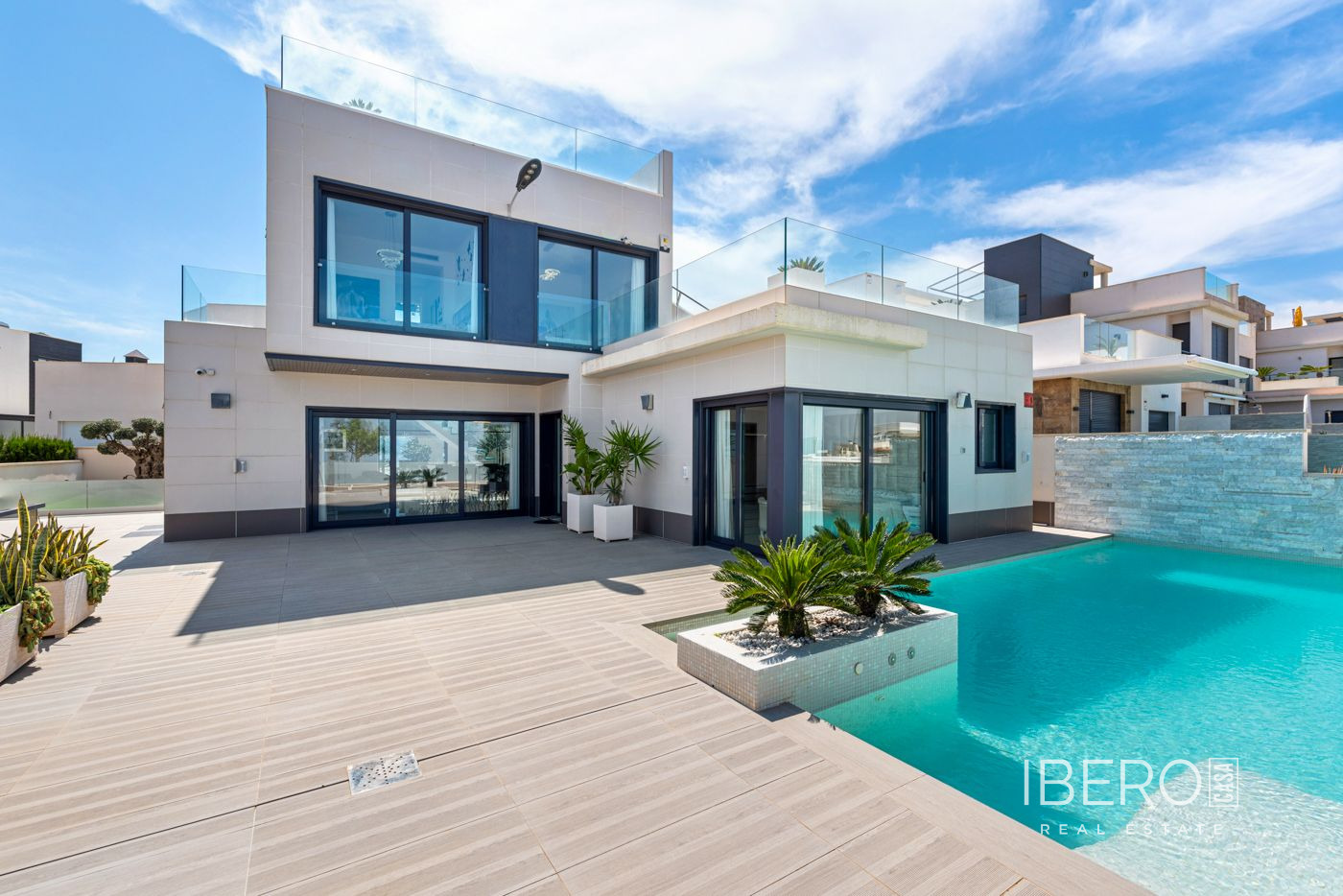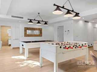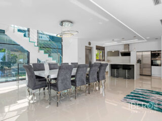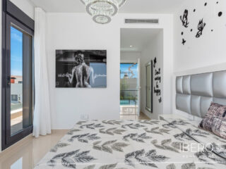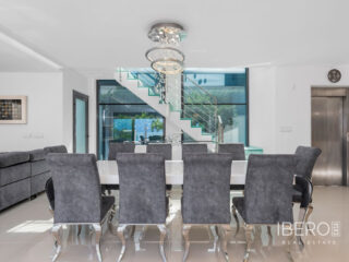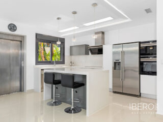 Villa de lujo con 5 habitaciones e increíbles vistas Esta propiedad de lujo de reciente construcción cuenta con un total de 5 habitaciones y 4 baños, distribuidos en dos plantas y sótano, con un práctico ascensor que comunica con todas las plantas de la casa y una preciosa escalera de cristal con luz interior. En la planta sótano encontramos un salón de juegos (con billar y futbolín), un salón para celebraciones con una cocina completa, 2 habitaciones, 2 cuartos de almacenaje y un baño completo. En la planta principal encontramos el salón comedor con cocina de concepto abierto e isla central, la habitación principal con baño en suite, así como el cuarto destinado a lavandería y un aseo. En la primera planta se ubican 2 habitaciones amplias, 2 cuartos de baño y los accesos a los balcones. En la última planta encontramos un increíble solarium de unos 70m2 con impresionantes vistas panorámicas. Equipamiento Dispone de aire condicionado, parking propio para varios vehículos, calefacción central con suelo radiante en toda la casa y se encuentra a la venta amueblada con muebles de diseño y equipada, salvo efectos personales. La vivienda cuenta también con una máquina de pelet para calentar la vivienda, así como placas solares y termo eléctrico. La vivienda incluye ventanas y puertas de seguridad, con llaves con clave, así como un sistema de seguridad con sensores en todas las estancias. El equipamiento es de alta calidad, incluyendo: sofás motorizados, colchones a estrenar, horno a vapor con pirólisis, nevera combo que fabrica hielo normal y picado. ExteriorEn el jardín encontramos una piscina privada con cascada, jacuzzi e hidromasaje. El espacio alrededor de la piscina está muy cuidado, decorado con una gran cantidad de vegetación. Junto a la piscina encontramos una ducha exterior. Por último, también hay aparcamiento para varios coches dentro de la parcela.AreaResidencial Bellavista se sitúa en una de las zonas con mejores vistas de la Costa Blanca. En el término municipal de San Miguel de Salinas, a tan solo 7 kilómetros de las playas de Orihuela, rodeado de campos de golf, el centro comercial más importante de la zona que cuenta con todo tipo de servicios, así como bares, restaurantes, tiendas de ropa, supermercados, etc. Este residencial es ideal para los amantes de la naturaleza y la tranquilidad.