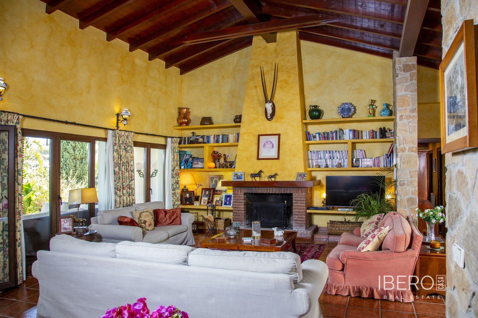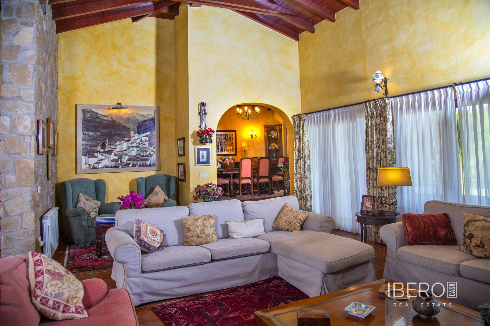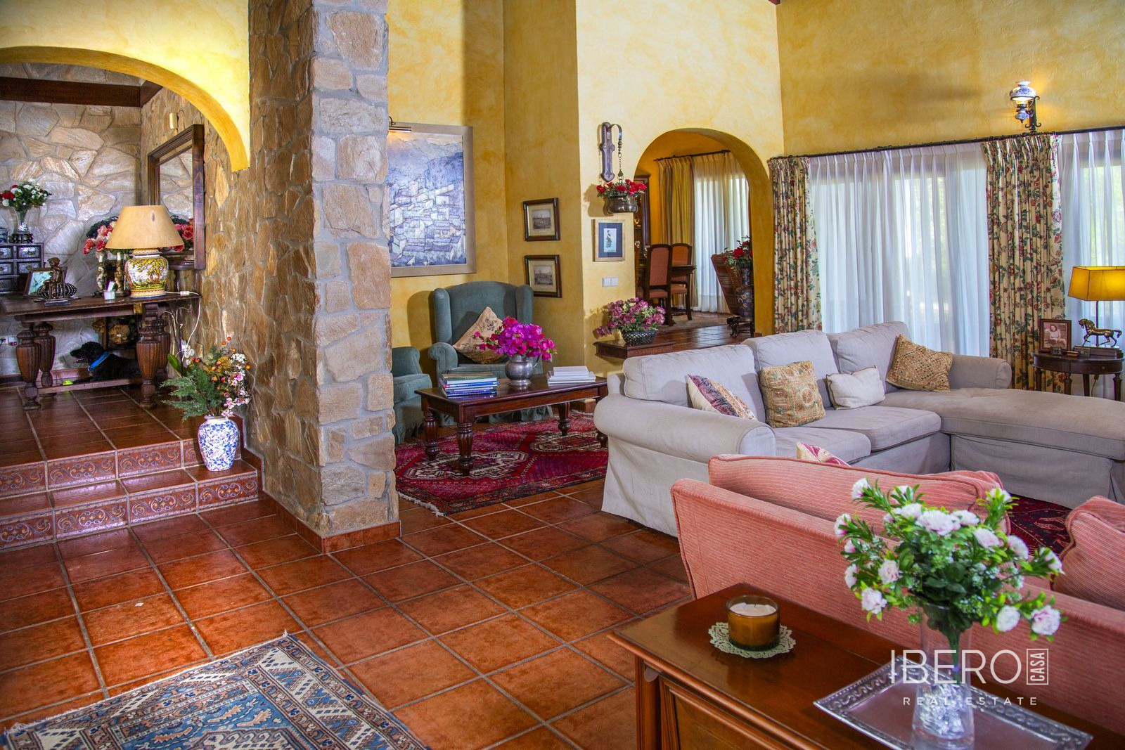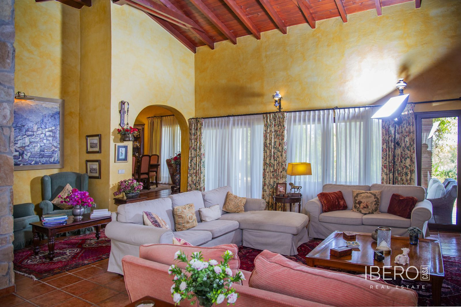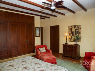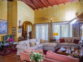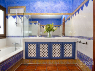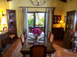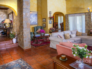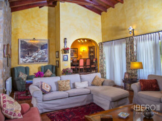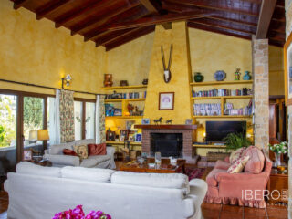 Villa encantadora en la zona de La Cala Golf. Villa de 6 dormitorios con 4 baños y aseo. La propiedad consta de 575 m2 construidos, además de encantadores espacios al exterior, como porches, terrazas, patios que sumán un total de 144 metros cuadrados, y jardines a lo largo de toda la finca para disfrutar de diferentes sensaciones, entornos y vistas. La propiedad se encuentra situada sobre una parcela de 10.000 m2, donde existen, aparte de la vivienda, amplios espacios para disfrutar de distintas actividades : la zona de la piscina de 12 metros de largo, rodeada de una gran pradera de césped tipo bermuda , para nadar , tomar el sol y relajarse o bien practicar un poco de deporte en la pista de tenis de alta calidad con iluminación nocturna . Un edificio de 85 m2 independiente de la casa, antiguamente dedicado a establos , está en la actualidad transformado en oficina y taller equipado con toda la maquinaria y herramientas necesarias para el mantenimiento de la finca. Este edificio , si se desea, podría fácilmente convertirse en casa de invitados o empleados . La propiedad cuenta con espléndidos jardines alrededor de toda la parcela. La vivienda está distribuida en dos plantas : en la planta baja, se accede a un amplio hall de entrada con doble altura y techo con artesonado de madera , un aseo de invitados, la zona de comedor, cocina, office y salón . En el ala oeste un dormitorio con baño ensuite , vestidor y salida directa a porche y jardin y 2 dormitorios con un baño. En el ala este hay un dormitorio con baño ensuite y terraza privada con pérgola, con uso ideal para invitados y el garaje con espacio para dos coches . Alrededor de la vivienda hay diferentes zonas de terrazas, porches y patios de diseño. En la planta superior, subiendo las escaleras, con un techo espectacular de artesonado de madera en forma de torreón, se accede a un amplio distribuidor que comunica con 2 dormitorios con salida a terraza , un baño y una sala de oficina/biblioteca de gran tamaño a la que se puede dar diferentes usos en función de las necesidades. En esta propiedad encontrará todo lo necesario para poder relajarse, trabajar desde casa si es necesario de manera privada y tranquila o simplemente hacer ejercicio en su hogar rodeado de naturaleza. Al recorrerla se descubren rincones con encanto y decoración cuidada, resultando increíblemente acogedora. Si está buscando una propiedad de estas características no dude en contactar y realizar una visita. La finca dispone de placas fotovoltaicas que proporcionan un autoabastecimiento del 50% de la energía total consumida durante el año, prácticamente durante el día produce para el consumo del 100%. 10 min La Cala de Mijas con sus playas increíbles en el Mar Mediterráneo y todos los servicios necesarios. 20 min en bicicleta si quiere hacer ejercicio al mismo tiempo. 5 min La Cala Golf Resort, para quien le guste practicar este deporte o simplemente acercarse a su zona de SPA o restaurantes y zonas de ocio. 5 min a Santana Golf 10 min a Mijas Golf 5 min a instalaciones hípicas 10 min a colegios internacionales ( inglés y alemán) 15 min Fuengirola. 30 min Marbella, Puerto Banus 25 min AGP Malaga, Aeropuerto Internacional de Málaga 30 min Málaga Capital