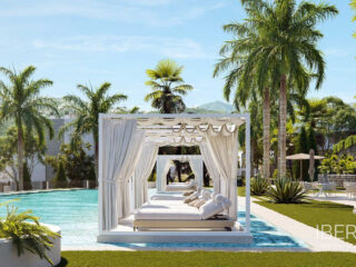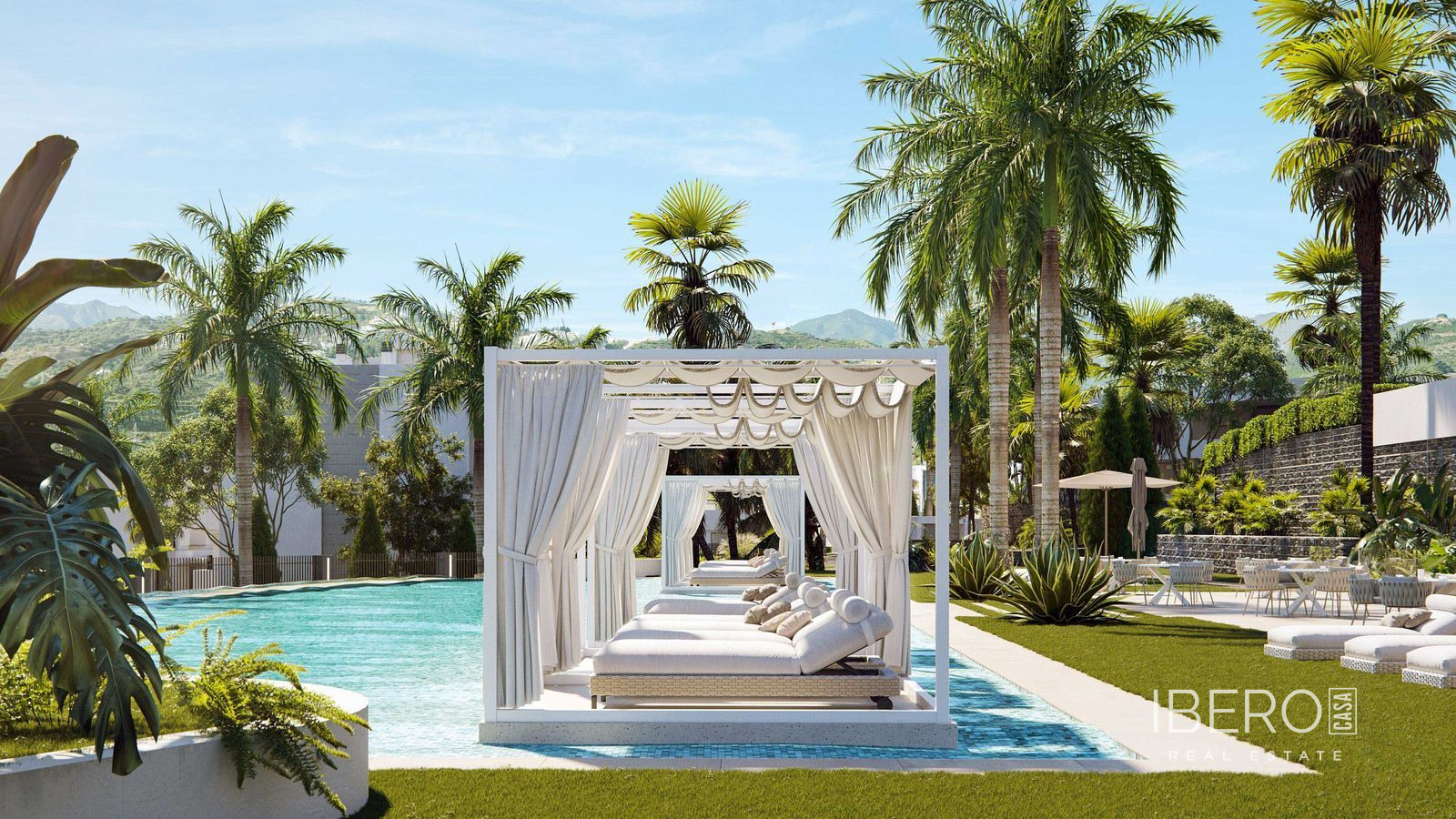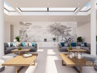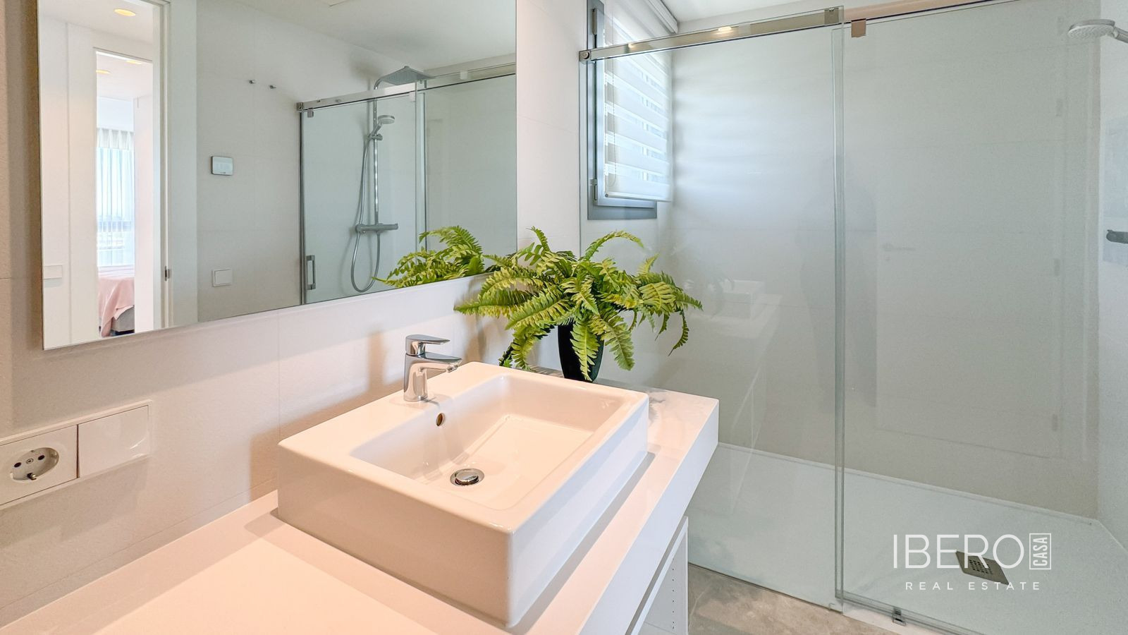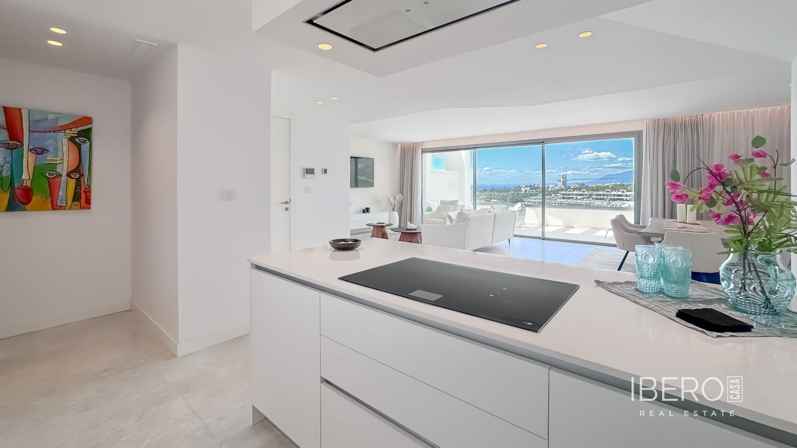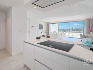 Ático dúplex contemporáneo con terraza y solárium, ambos con vistas panorámicas al mar Mediterráneo y rodeados por los fairways del campo de golf de Santa Clara El ático con orientación oeste en el campo de golf de Santa Clara le fascinará con sus pintorescas puestas de sol. Los ventanales panorámicos de suelo a techo de la sala de estar de planta abierta con comedor y cocina totalmente equipada le ofrecen una vista fantástica de las montañas y el Mediterráneo desde todos los ángulos. La terraza de 29 m2 frente a la sala de estar combina a la perfección el área interior con el área exterior, creando un ambiente de vida extremadamente espacioso y aireado. En el mismo nivel se encuentra el dormitorio principal con vistas al mar y baño en suite con bañera y ducha, así como un vestidor. También hay dos dormitorios más que comparten un baño familiar con una amplia ducha y un aseo de invitados. Lo más destacado es la magnífica azotea de 110 m2 con vistas panorámicas, que le ofrece muchas posibilidades para eventos sociales con su familia y amigos. Dentro del exclusivo complejo privado puede disfrutar de amplias instalaciones comunes para su relajación y ejercicio. Entre ellas se encuentran amplios jardines mediterráneos con 4 grandes piscinas al aire libre, tumbonas y camas chill-out, una zona lounge bar al aire libre, un spa con sauna, baño de vapor, piscina cubierta y gimnasio, así como una cafetería y un salón de coworking. - Incluye 2 plazas de aparcamiento en el garaje subterráneo y 1 trastero privado - Calefacción por suelo radiante en toda la propiedad y aire acondicionado (frío/calor) - Una casa de ensueño para vivir, trabajar y pasar unas relajantes vacaciones - Ático ideal en el sur para parejas y familias - Ubicación perfecta para golfistas - Lista para entrar a vivir de inmediato Feedback geben