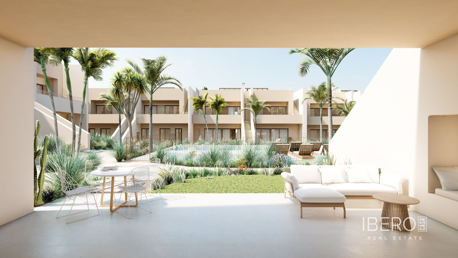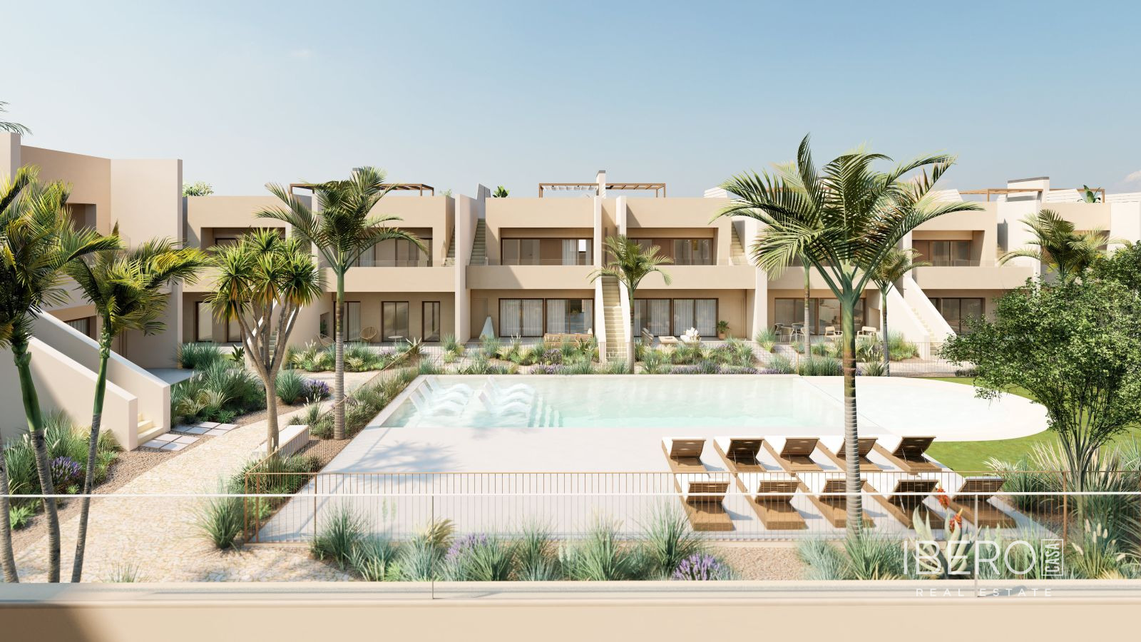 Nueva Promoción: Precios desde €285,000 a €349,000. [Dormitorios: 3] [Baños: 2] [Construidos: 90m2 - 95m2]. Dentro de Roda Golf & Beach Resort, el nueva y exclusiva promoción de bungalow cuenta con amplias viviendas en planta baja de 3 dormitorios y 2 baños con grandes terrazas y jardines privados delanteros y traseros, además de áticos de 3 dormitorios y 2 baños con solárium de 90m2 en la azotea. Todas las viviendas ofrecen vistas espectaculares, orientaciones soleadas y acceso a jardines comunitarios con una bonita zona de piscina. Construidas con materiales de primera calidad y aprovechando al máximo el espacio y la luz, ofrecen el alojamiento perfecto desde el que disfrutar de los 320 días de sol al año que ofrece la Costa Cálida. Todas las propiedades incluyen aparcamiento y un trastero privado.