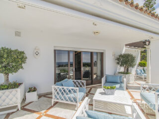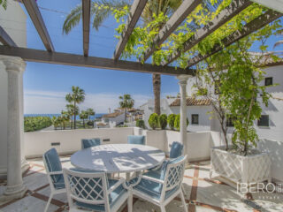 GRAN PROPIEDAD DE LUJO EN MARBELLA CON VISTAS AL MAR Espectacular propiedad de lujo con vistas al mar establecida en una de las mejores zonas residenciales de Marbella, a los pies de Sierra Blanca a sólo unos minutos de la Milla de Oro, Puerto Banus y el centro de Marbella. Espaciosa propiedad en excelente estado (originalmente dos propiedades unidas) con un total de cuatro amplios dormitorios, cuatro cuartos de baño más aseo, enorme salón dividido en dos ambientes, cocina independiente y fantástica terraza con vistas al mar. Además incluye cuatro plazas de garaje más dos trasteros. La propiedad se encuentra dentro de una exclusiva urbanización con seguridad 24 horas, piscinas exteriores y bonitos jardines. Una propiedad ideal, para los clientes que quieran disfrutar de una gran propiedad con vistas al mar en una de las zonas más exclusivas de Marbella.